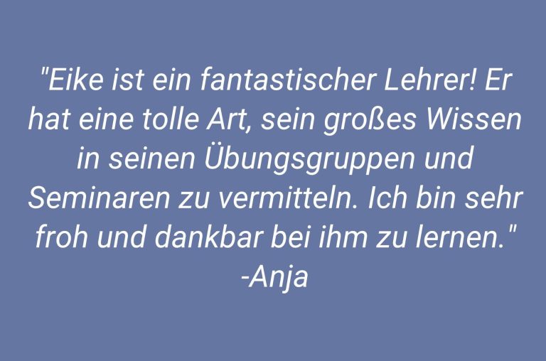 Die Teilnehmerzahl je Gruppe ist begrenzt, da wir in Gruppen von maximal 8 Personen praktizieren.